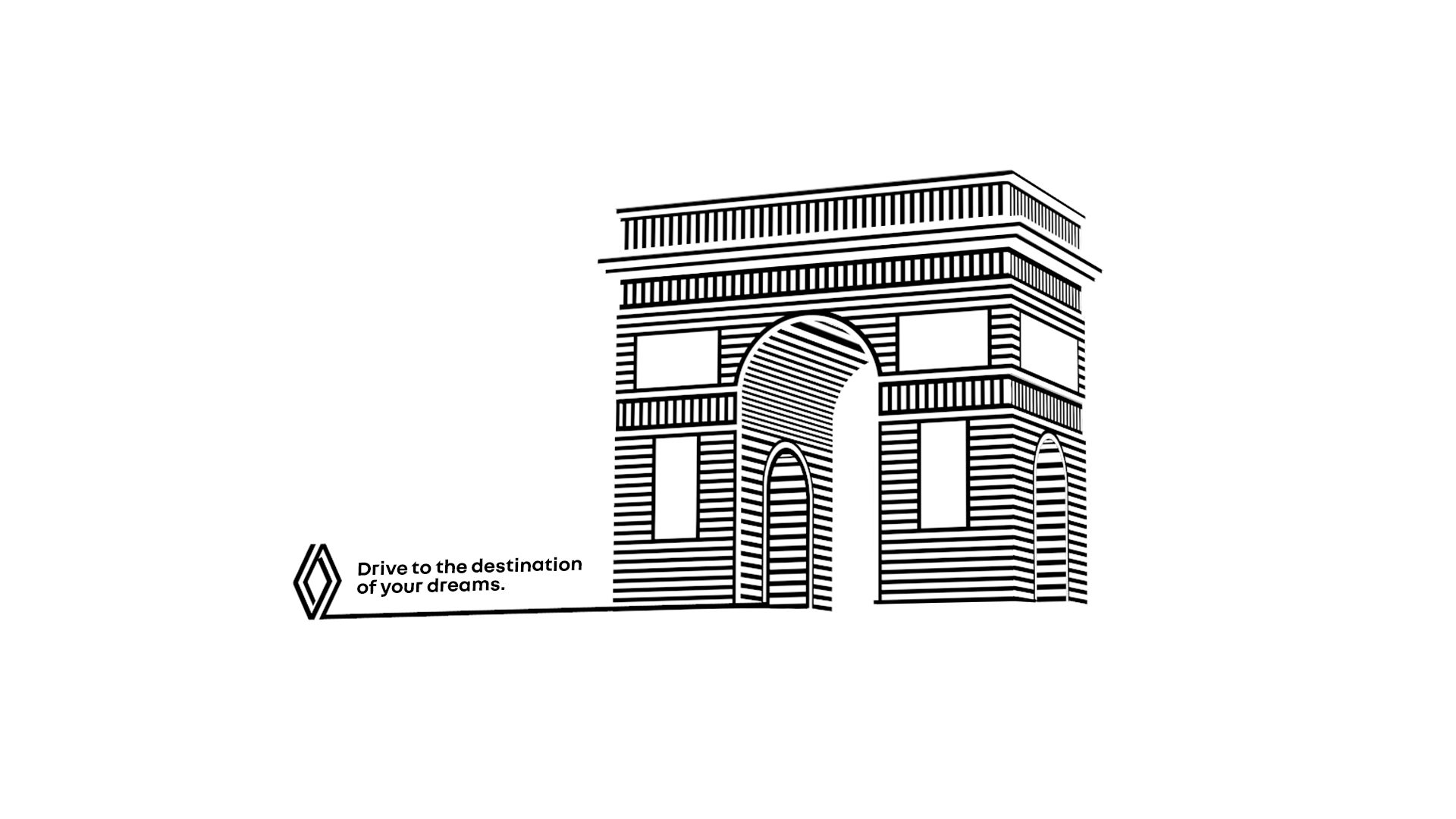 르노의 선형 로고에서 시작하여 에펠탑, 개선문, 루브르 피라미드와 같은 파리의 아이콘을 재해석했습니다. 르노의 프랑스 유산과 운전자를 기다리는 꿈의 목적지를 연결하는 간단하면서도 강력한 방법