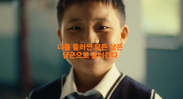 크리스마스트리를 만드는 것처럼, 트리(이야기)를 세우고 장식(서비스)을 얹는 크리스마스트리 기법을 사용했습니다. (웃음) 사람들이 재밌어하고 일상에서 공감할 만한 이야기의 나무를 먼저 세워 두는 게 스토리텔링 광고에선 우선으로 해야 할 일같아요. 이번 광고의 주요 타깃은 전 연령으로 어린아이부터 노인까지 모두 재밌어할 만한, 짝사랑 이야기를 꺼냈습니다. 바로 ‘같은 반 여학생을 짝사랑하는 중학생 남자아이’가 트리(이야기)가 된 거죠. 그 이후 장식(서비스)을 달아 이야기가 더 빛나도록 브랜드를 여기저기 얹고 올려 반짝이는 트리 같은 광고를 완성했습니다. 가장 경계했던 것은 ‘아이의 순수한 짝사랑 이야기를 브랜드가 해치게 하지 말자’였습니다. 한 가지 다행이었던 건 당근의 서비스들이 우리 일상과 전부 맞닿아 있었기에 이야기와 브랜드를 결합하는 작업이 아주 힘든 과정은 아니었습니다.