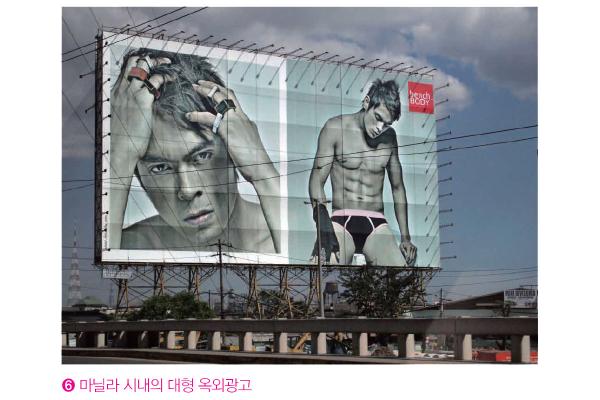 ⑥ 필리핀인은 자존심이 강하기로 유명하다. 그런 필리핀인의 성향은 옥외광고에서도 잘 드러난다. 브랜드 간의 자존심 싸움 때문에 필리핀 옥외광고는 점점 크고 높게 설치되고 있다. 차량이나 보행자, 교통 표지판의 전망을 방해하거나 운전자의 시야를 가리기도 해서 현재 옥외광고판에 대한 규제 법안이 나올 정도다.