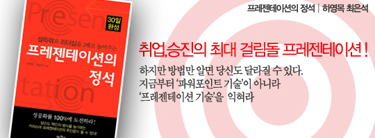 아울러 프레젠테이션에서 빠질 수 없는 파워포인트 기술에도 많은 부분을 할애하였다. 파워포인트 자체의 기술보다는 프레젠테이션을 더욱 빛나게 하기 위해 효율적으로 파워포인트를 이용하는 접근법을 소개하였다. 이 모든 기술들을 자신의 것으로 만든다면 유능한 인재로 거듭날 수 있을 것이다.