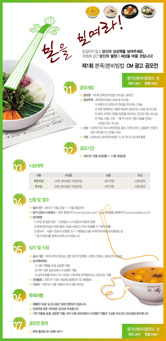 제1회 본죽,본비빔밥 CM 광고 공모전 [2007.10.22~11.30]