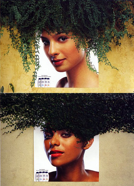 사웅 파울로에서 만든 도브 샴푸의 포스터. 오래오래 연구해서 철학적인 아이디어를 내는 수도 있지만, 이건 아주 쉽게 잘 풀었군요. 아트 디렉터의 눈이 상당히 뛰어나죠? 잘 한 점 세 가지: 1. “놀라움”을 주면서도 “아름다움”을 잘 살림. 2. 상상력을 십분 발휘하여 매체를 슬기롭게 사용함. 3. 시선의 흐름을 잘 계산한 제품의 위치. 하나 추가하자면 예쁜 모델을 잘 찾은 점. 사실 2D와 3D를 합성하는 방법은 많이 써왔지만, 이건 정말 거부감이 전혀 들지 않는 멋진 결합입니다. 자연스러운 덩굴과 잘 계산된 얼굴의 각도가 절묘하게 맞아 떨어지는군요. 보통 헤어 디자이너보다 머리를 더 잘 했어요. 저도 길을 가다가 담쟁이 덩굴을 가끔 보는데, 멋있다고 속으로만 생각하며 그냥 지나쳤지 이런 상상은 못 했거든요.