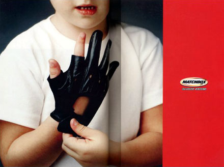 멀리 아르헨티나에서 만든 “매치박스” 경주용 자동차 시리즈 광고. 미니카니까 갖고 노는 데는 실제로 두 손가락만 필요하지요. 비록 미니카를 갖고 놀지만, 기분은 레이서! 저는 타겟도 아닌데 제품을 보여주지 않으니 더 궁금하네요. 또 더블 페이지 스프레드의 레이아웃을 할 때마다 그림 한가운데가 잘리는 게 싫어서 고민인데, 면 분할도 적절히 해서 그 문제를 극복했군요.