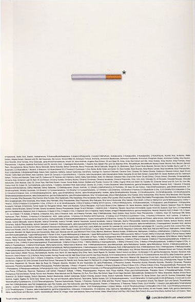 암 환자 지원협회의 광고. 인도의 뭄바이에서 만들어 상도 많이 받았습니다. 논문의 각주가 본문보다 더 길 수 밖에 없습니다. 담배의 폐해가 그 정도로 심하니까요. 제작비도 별로 들지 않았군요. 담배 안에 뭐가 들었는지 다 읽어보고 무서워서 한 대? 뭐 이렇게 겁 준다고 내가 끊을 것 같냐고 하시겠지만, 일찍 끊을수록 더 큰 기쁨을 빨리 얻을 수 있으니 혹시 아직도 피우신다면 한 번 생각해 보세요. 아니면 다음 광고에서 한 말씀 더!
