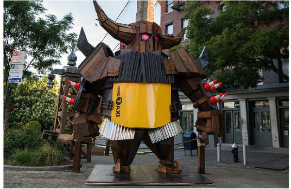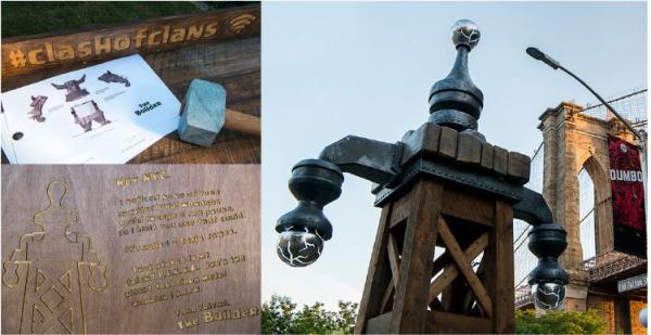'클래시 오브 클랜'에서 나오는 캐릭터가 뉴욕 부르클린 거리에 대형 조각상으로 소비자들을 만나고 있다. 또 다른 조각상은 교통 삼각뿔, 자동차 후드, 보라색 LED 라이트 등으로 만들어 졌다. 또한 테슬라 타워(Tesla Tower)도 만들어서 핸드폰을 충전할 수 있게 만들기도 했다. 마치 모바일 게임의 한 장면을 세상 밖으로 옮겨놓은 듯한 착각을 불러 일으킨다. 장인이 만든 조각상 근처에는 장인이 손수 적은 메모가 남겨 있어, 이번 프로젝트의 의미를 잘 전달하고 있다.