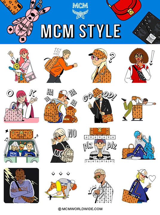 패션 브랜드 MCM은 지난 3월 일러스트레이터 강진구 작가와 협업해 다양한 일상의 모습이 담긴 ‘MCM Style’ 스페셜 에디션 이모티콘을 출시했다. 이 이모티콘은 MCM SS19 시즌 ‘루프트(LUFT)’ 컬렉션의 콘셉트인 여행과 핸즈프리를 모티브로 만들어졌다. 누구나 겪을 수 있는 상황을 다양한 표정과 제스처로 표현해 공감 지수를 높였다.