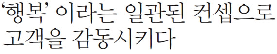 ‘슬럼프는 행복입니다 , 헤어짐은 행복입니다, 힘든 오늘은 행복입니다, 행복한 내일이 여기서 시작됩니다’라는 카피로 행복에 대한 정의를 역설적으로 커뮤니케이션 하여 오히려, 행복에 대한 의미를 강조했다.