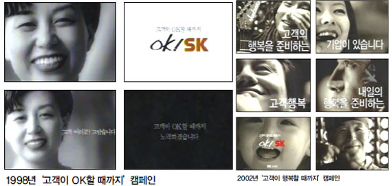 SK하면 떠오르는 슬로건은? 대부분의 사람들이 바로‘OK! SK’를 떠올린다. 선경에서 SK로 CI가 변경되며 SK의 브랜드 고지를 더욱 효과적으로 하고자 탄생한‘OK! SK’는 이제 SK와는 떨어질 수 없는 말이 되었다. 이렇듯 처음‘OK! SK’캠페인은‘고객이 OK할 때까지’라는 고객만족에 대한 의지를 전달하며 캠페인이 시작됐다.