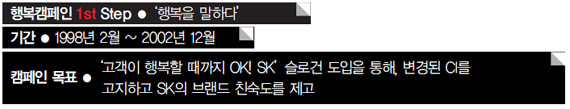 SK로의 CI변경은 단순히 SK그룹의 사명변경 차원이 아닌 고객행복 경영의 전기로 삼겠다는 의지의 표명이었기 때문에 고객의 행복을 최고로 생각하는 기업 철학을 담고 있다. OK! SK캠페인은 그 뒤‘고객이 OK할 때까지’에서‘고객이 행복할 때까지’로 슬로건이 수정되었다. 고객의 OK사인은 고객만족을 의미하지만, 고객만족 보다 더 큰 고객의 가치를 지향해야 하기 때문에 고객이 행복할 때까지 라는 슬로건을 통해 무한노력의 의지를 표현했다.