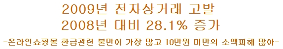 2008년 대비 2009년 전자상거래 거래액은 6.5%, 사이버쇼핑 거래액은 13.7%에 증가한 반면 소비자연맹에 접수된 전자상거래 관련 고발은 28.1%나 증가했으며 고발유형도 대금은 지급했는데 물건은 몇 달이 지나도 배송해 주지 않는다거나 아예 사이트가 폐쇄되고 연락조차 되지 않아 피해구제가 사실상 불가능한 사례가 늘고 있는 추세이다. 더욱 심각한 것은 10대 청소년 소비자피해가 급격하게 증가하고 있다는 것이다.
