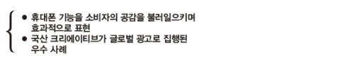- 어느덧 스마트폰을 빼고서는 일상을 이야기하기 힘들어진 요즈음이다. 핫 이슈로 세간의 이목을 집중시키며 트렌드를 선도하는 휴대폰 광고를 만든다는 것은 결코 마음 가벼운 일은 아니다. 이럼에도 새롭고 뛰어난 크리에이티브를 기대하는 시선들의 무게감을 떨쳐내고...