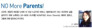 - 시간적, 재정적 여유를 누리며 더 이상 누군가의 어머니, 아버지로서가 아닌 자신만의 삶을 살아가기 위해 노력하는 50~60대 시니어를 NOMP(NO More Parents) 세대라 칭하고, 그들에 대해 알아보고자 한다.